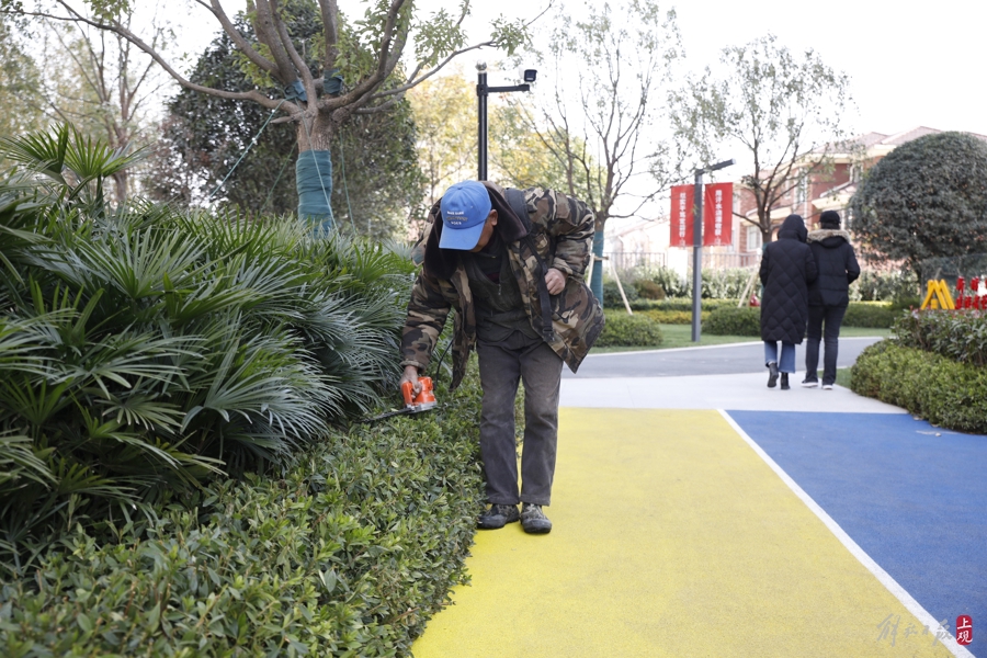 小区物业工作人员将公寓环境维护得干净美丽。