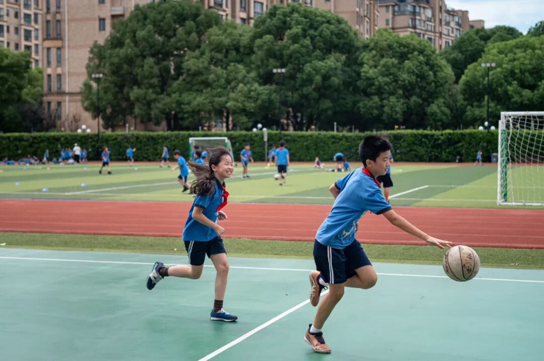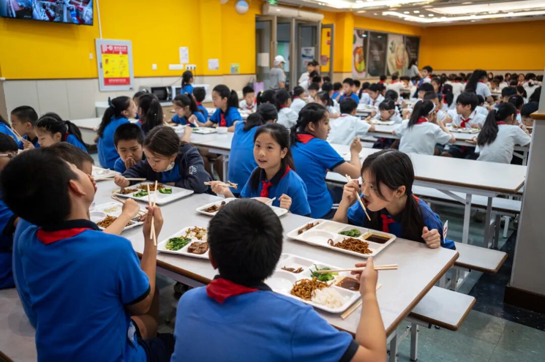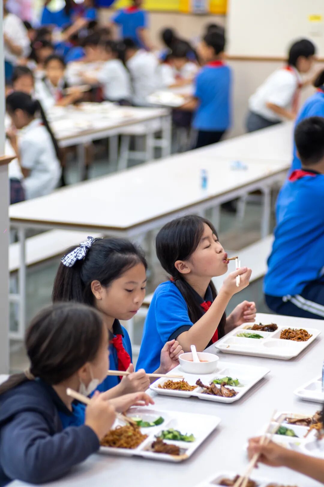午休时间,Cora跟同学跑去食堂,快速扒完饭菜,把餐盘交掉;又一溜烟儿没影了,大家都要争分夺秒去操场玩耍。