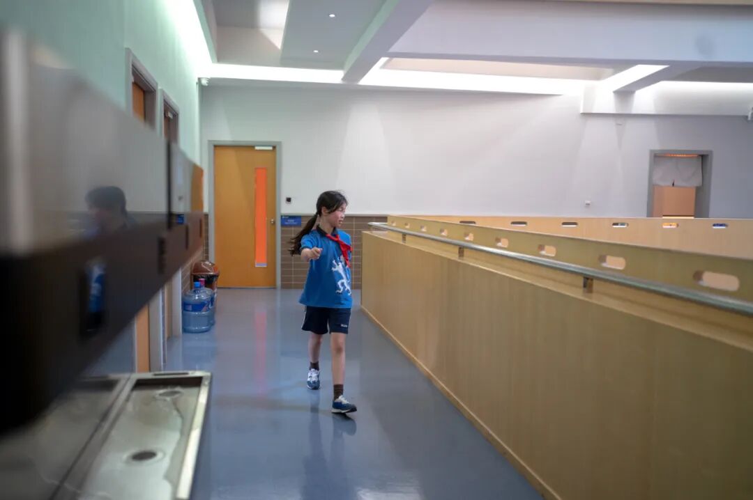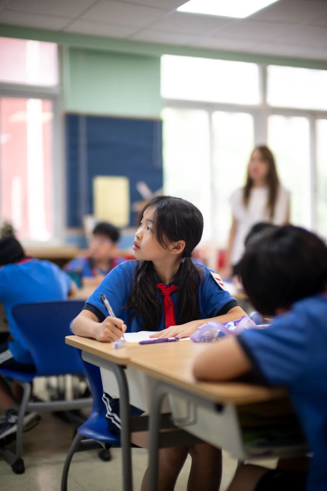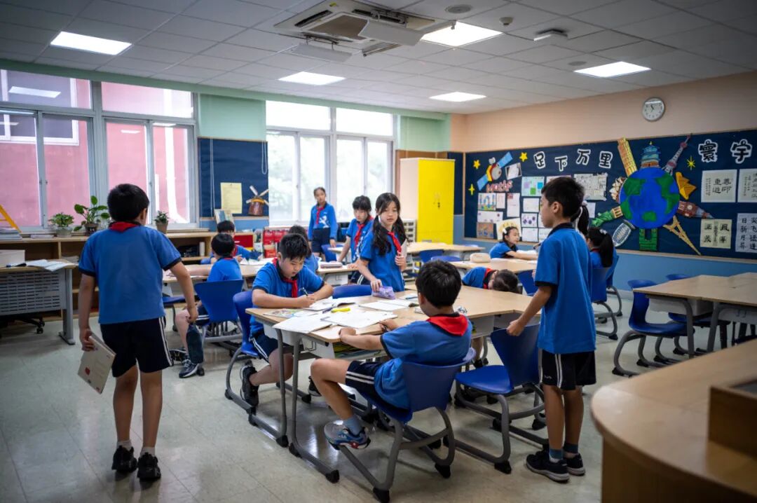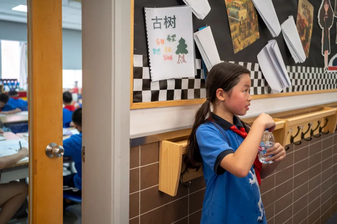 上午10点50分,Cora和同学们三三两两,拿着书和笔袋在校园的走廊里穿梭。上午第四节是“语文走班课”,根据孩子们的学习能力和兴趣,Cora分在“鲲智班”。