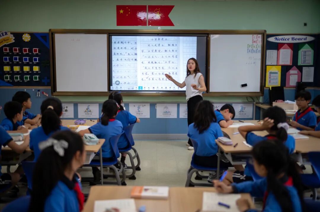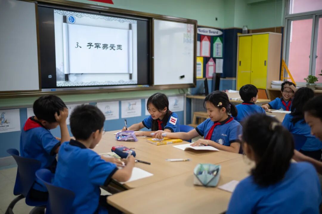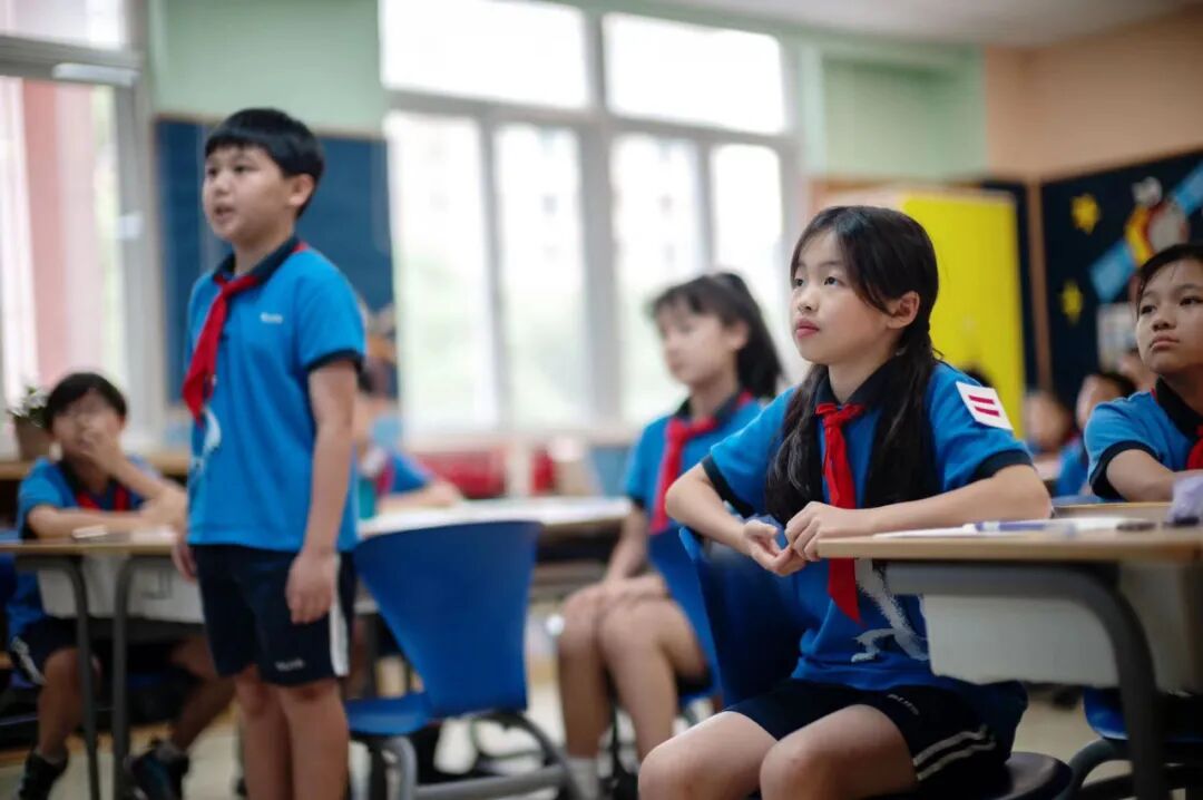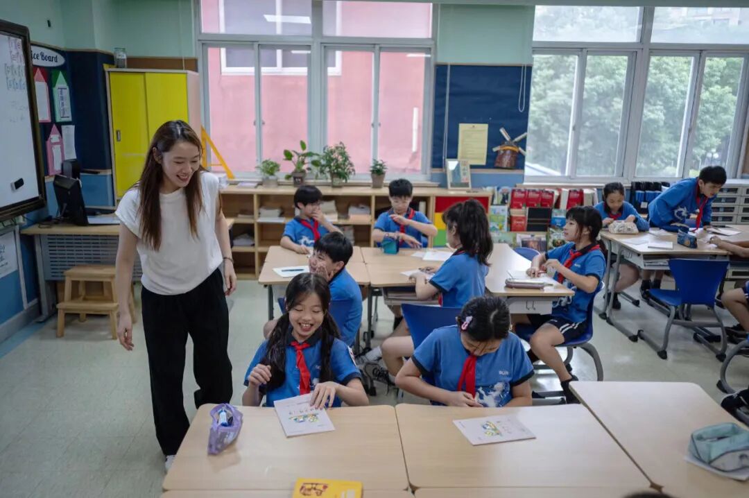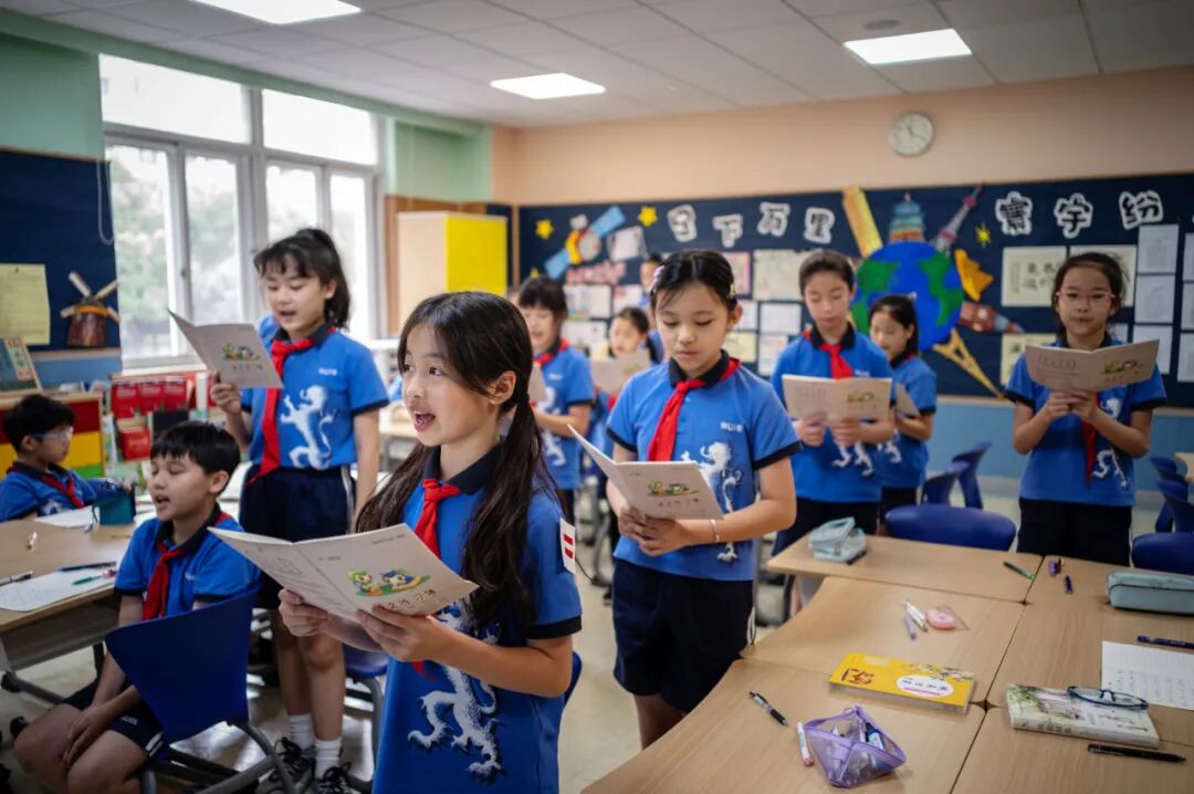 上午10点50分,Cora和同学们三三两两,拿着书和笔袋在校园的走廊里穿梭。上午第四节是“语文走班课”,根据孩子们的学习能力和兴趣,Cora分在“鲲智班”。