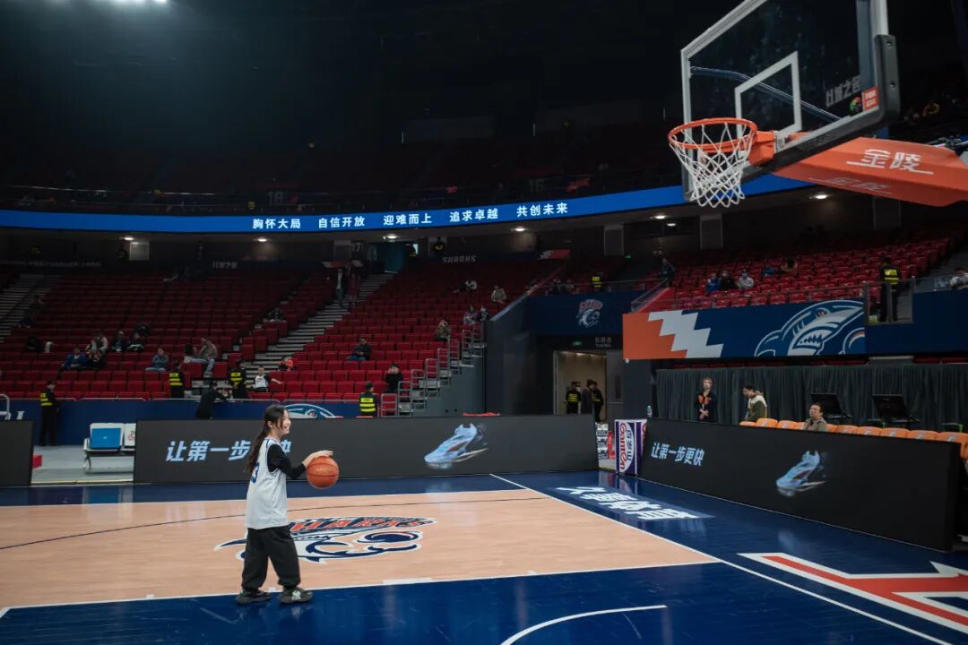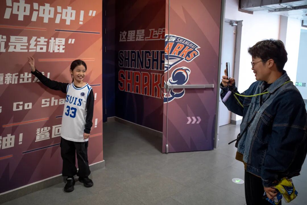 “双11”这天是上海久事男篮的主场比赛。结束了上午的篮球课,一家三口下午正好去上海体育馆打卡看比赛。