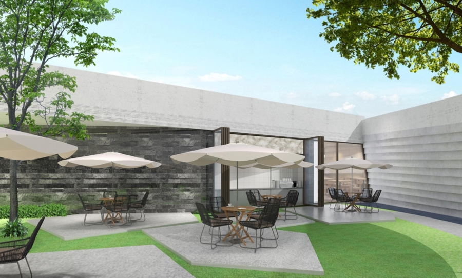 值得一提的是,公园主入口广场被设计为露天剧场,在这人流最为密集处旁边就是“境享”社区食堂。常规的社区食堂沿街而建或是位于室内,“境享”餐厅则整体坐落在公园里,不仅有室内用餐区,还有外摆位,同时设立便民早餐窗口和咖啡角。