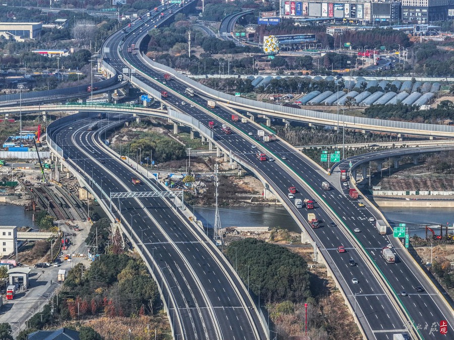 2023年12月14日,车辆通过外青松公路跨吴淞江大桥往返上海和江苏。