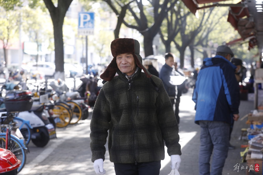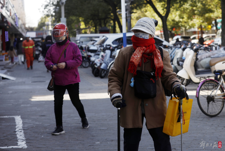 老人们出门开启防冻模式。