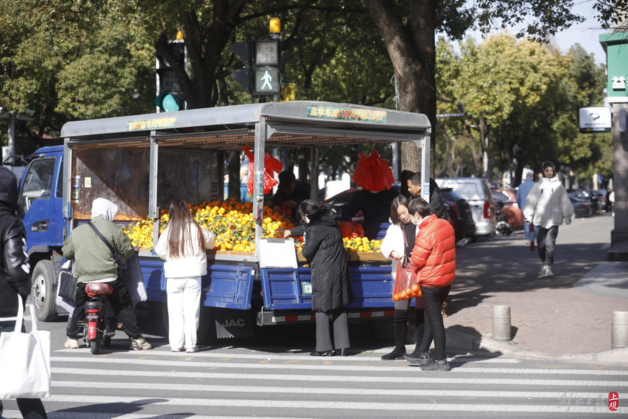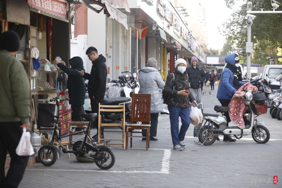 居民区街头食杂店与流动摊点,有着冬日浓郁的烟火气息。