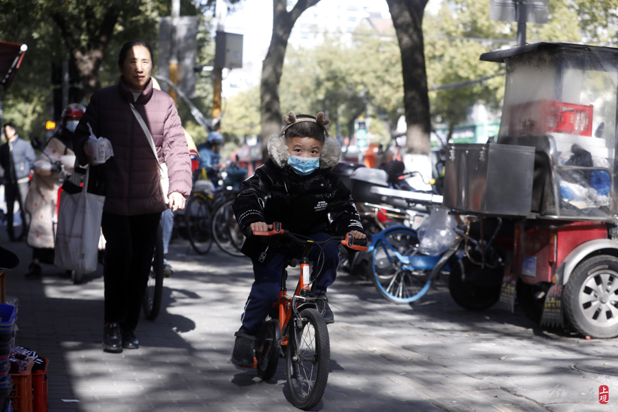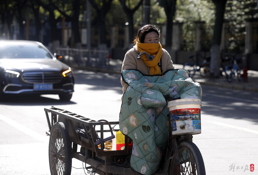 行走在户外的人们,有着“冷暖交加”的奇妙体验,比起前两天的大风阴雨天气,今天则要舒适得多。