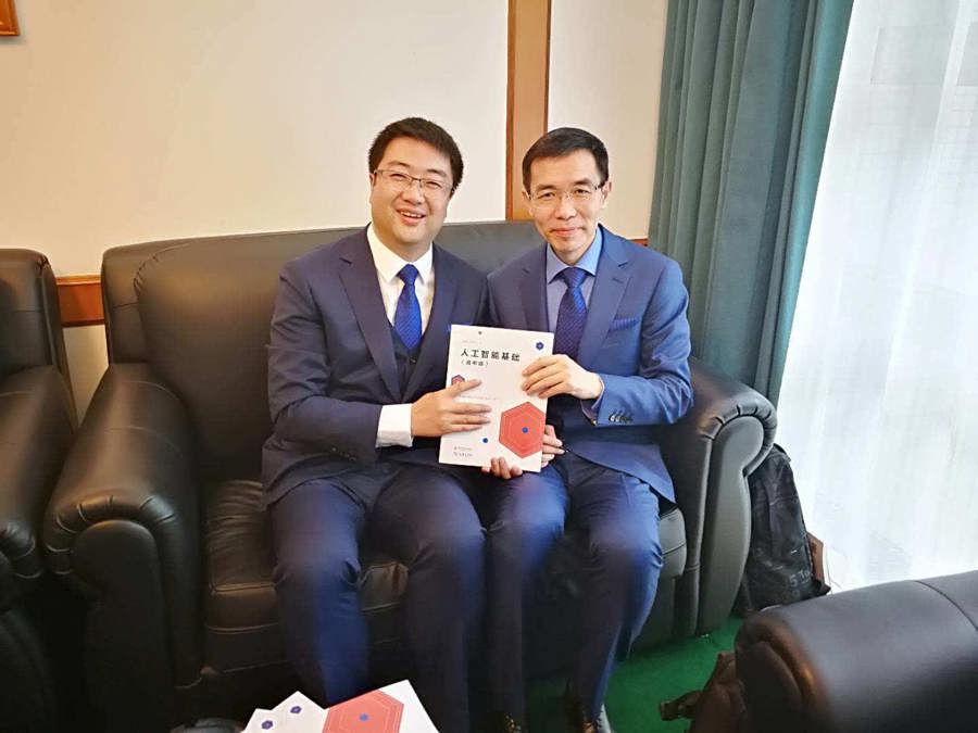 2018年4月28日,《人工智能基础高中版》的首发仪式在上海华东师范大学举行,发布前,汤老师很兴奋也很郑重地让我把所有编撰团队叫在一起开了一个会,把出版教材这件事的意义和大家做了详细分析,鼓励大家还要继续把初中版也筹划出来,让学生学习人工智能有知识上的衔接。
