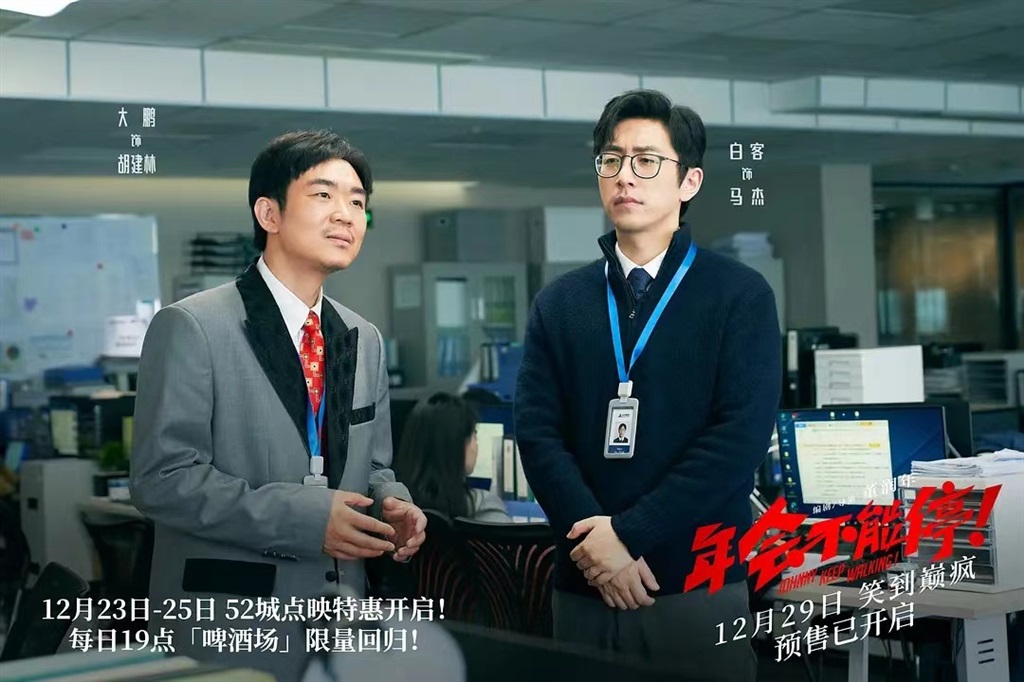 喜剧片中,由大鹏、白客主演的打工人喜剧《年会不能停》,讲述男主角从“工厂”到“大厂”、从“蓝领”变“金领”,因与环境格格不入而笑料百出,映射职场众生相。在金鸡推介会上,大鹏直言自己也有十几年的互联网打工经历,拍这部《年会不能停!》让他重新回忆起过去痛苦的经历。本片是大鹏今年定档的第五部院线电影,同时也是近年少见的职场喜剧国片。此外《年会不能停!》也花式推出“啤酒场”,入场观众将免费领取啤酒,一边小酌一边观看这部讲述“打工人”的职场喜剧片。