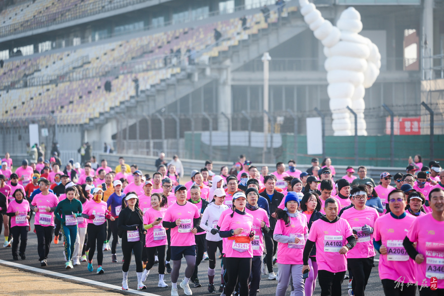 全天近9000名跑友参加了半程马拉松、欢乐跑个人组和亲子组比赛,沿着饱含吉祥寓意的“上”字形赛道,用龙腾虎跃的姿态和昂扬的精神面貌跑进2024年,并喜迎F1中国大奖赛20周年。
