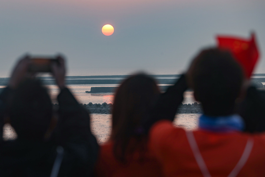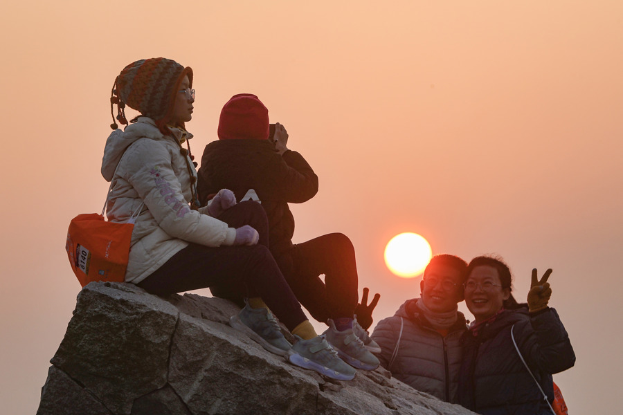 参赛家庭在完赛后欣赏新年日出。