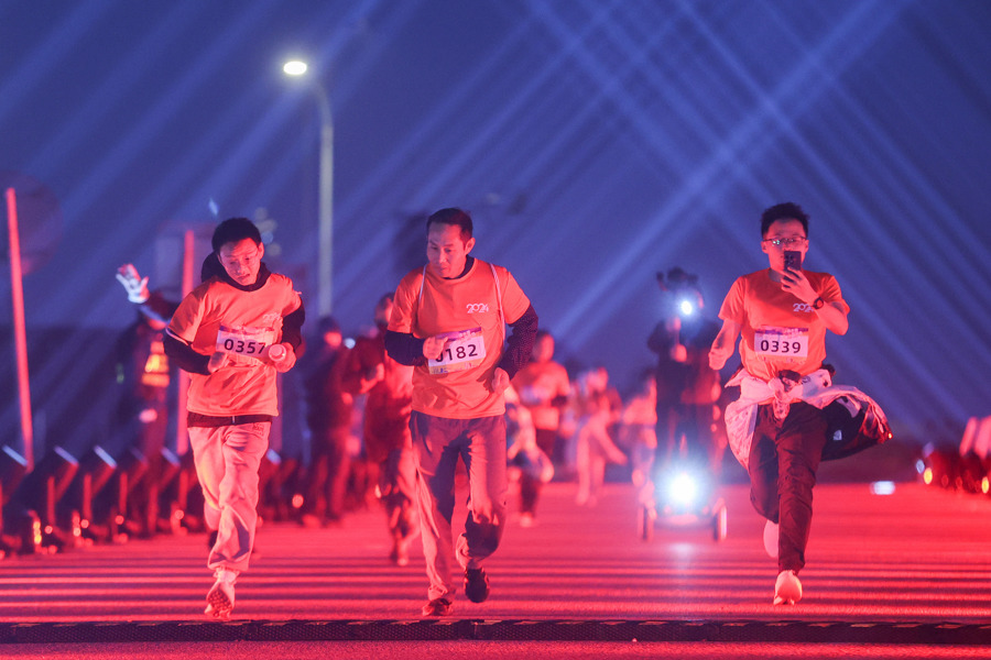 滴水湖迎新跑:1500名选手迎接2024新年第一缕阳光