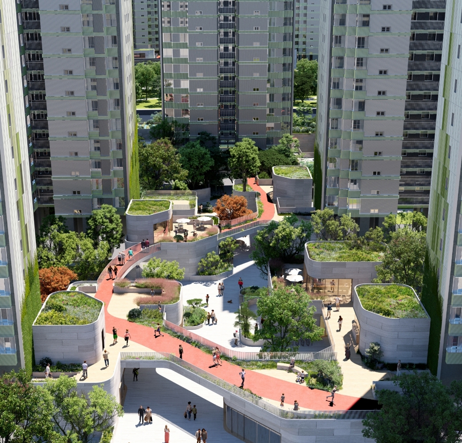 比如停车问题。过去的安置房虽然有地下停车库,但从车库走到每户,还有相当长的距离,这就导致了地下车库没人停、地面车位却不够用的现象。金桥集团此次专门邀请国际建筑大师马岩松整体设计,打造了两层地下车库,实现人车分流的同时,也让停车场可以直接到户。