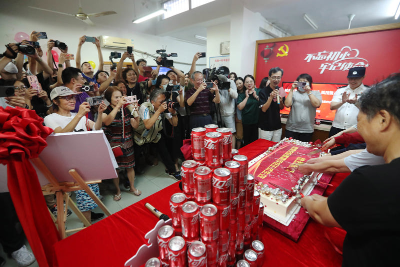 2023年8月28日,项目签约首日即高比例达到协议生效条件,居民们按捺不住内心的喜悦,分享庆祝项目正式生效的蛋糕。蒋迪雯 摄