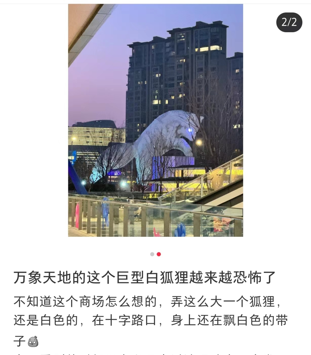 (原标题为:《“巨型白狐”天降上海市中心,是可爱,还是“哈宁”?网友:想要夜里厢去看看》)