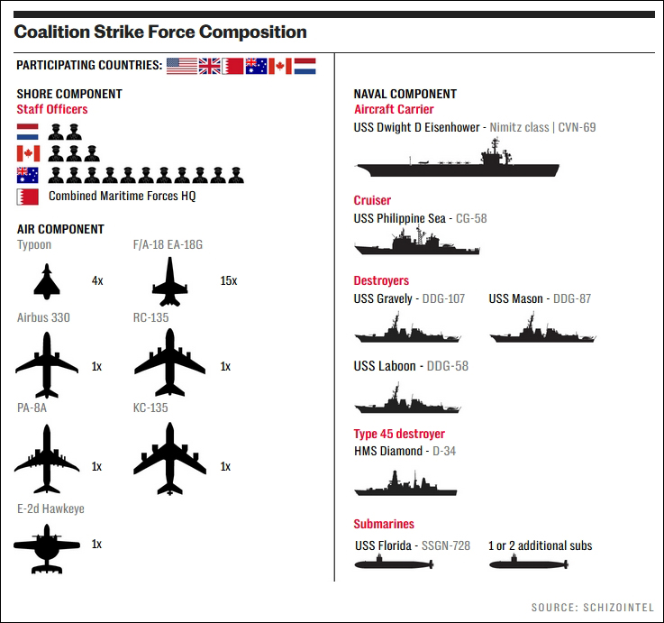 美英12日联合打击参与情况 图片来源:《电讯报》