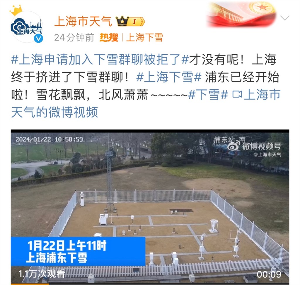 东方网记者包永婷1月22日报道:据上海市气象局官方微博@上海市天气,上海终于挤进了下雪“群聊”,浦东已经开始下雪。网友表示,“不容易,比头皮屑大多啦。”中国天气网官方微博@中国天气友情提醒,“抓紧时间拍,过会就没了。这次降雪主场不在上海,见雪看运气吧。”