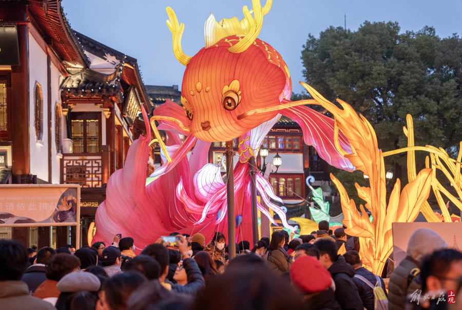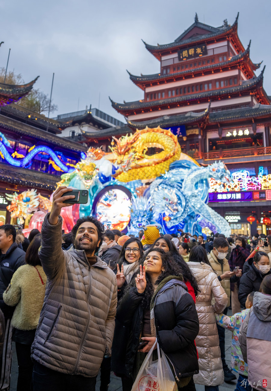 上海豫园灯会千灯点亮,吸引了不少中外游客前来打卡。