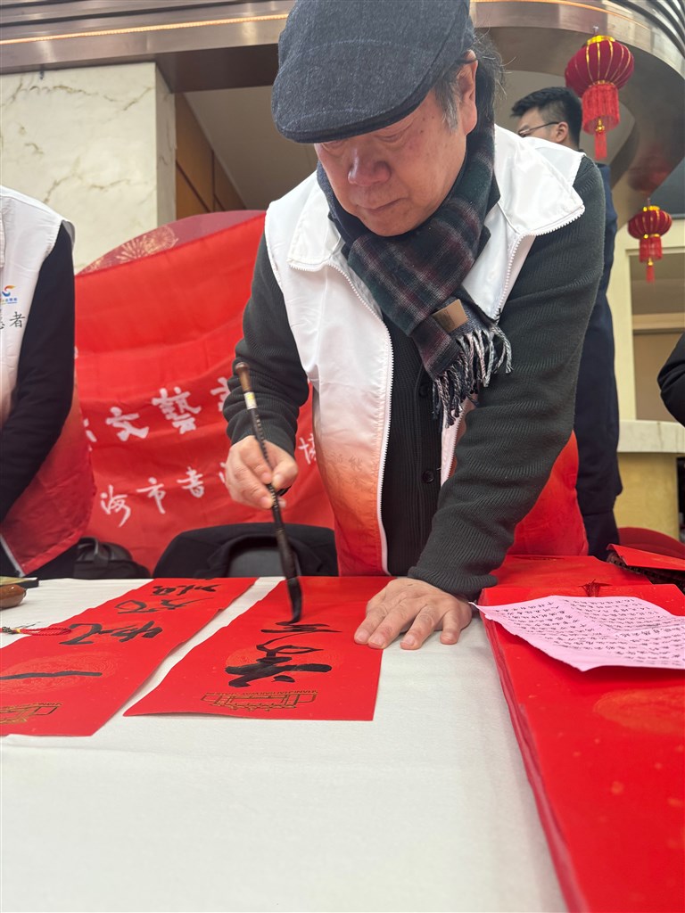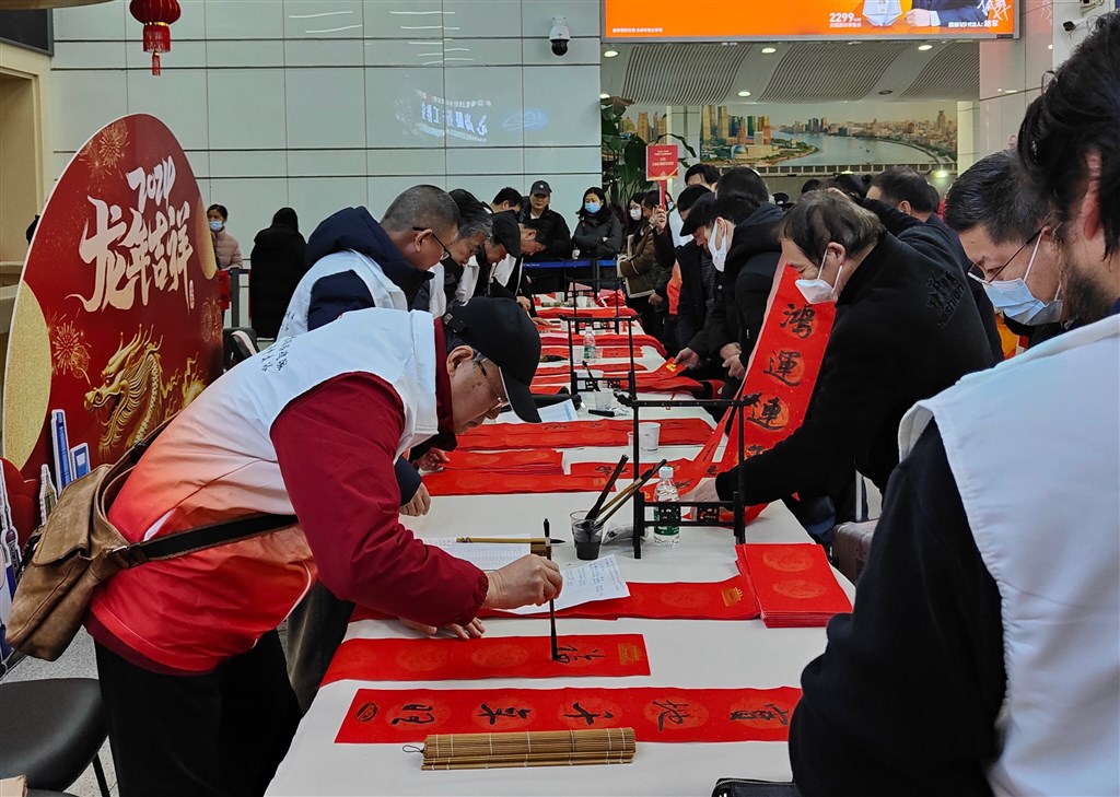 沪上书法家现场挥毫泼墨 为市民旅客送去新春祝福