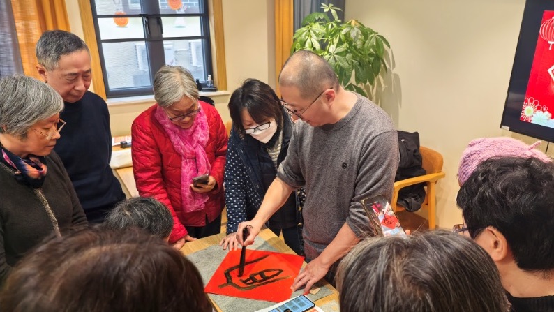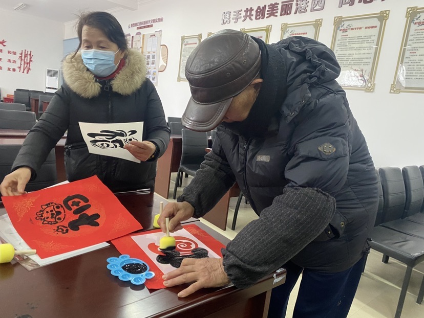 崇明港西镇富民村、北双村联合华懋健康团队带着村里老人参与福字拓印和贴春联等民俗活动,一起热闹迎新春。