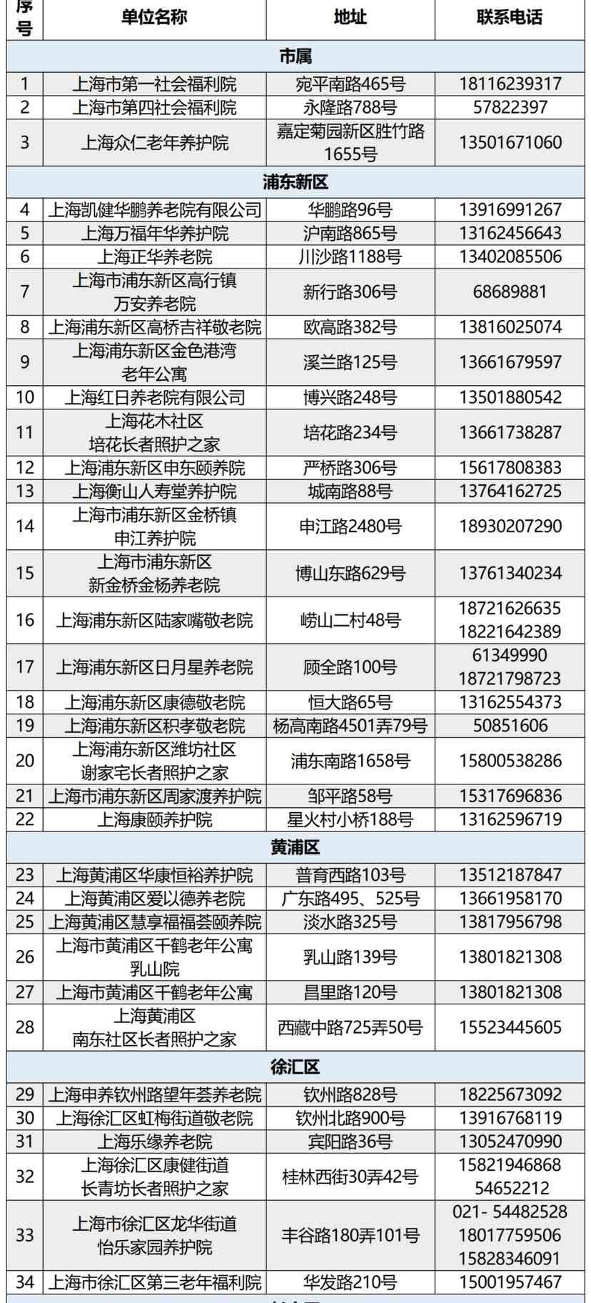 记者了解到,为满足老年人因家政服务人员过节休假、出院后需专业护理服务等产生的短期托养照护需求,在上海民政部门统筹下,包括一福院在内的全市一批养老机构近日推出了“春节期间短托养老”服务项目,帮助家庭解决燃眉之急。 “短托养老”服务项目参与机构一览