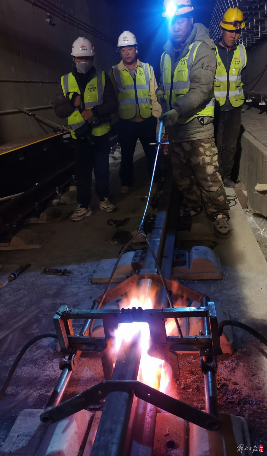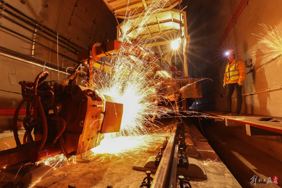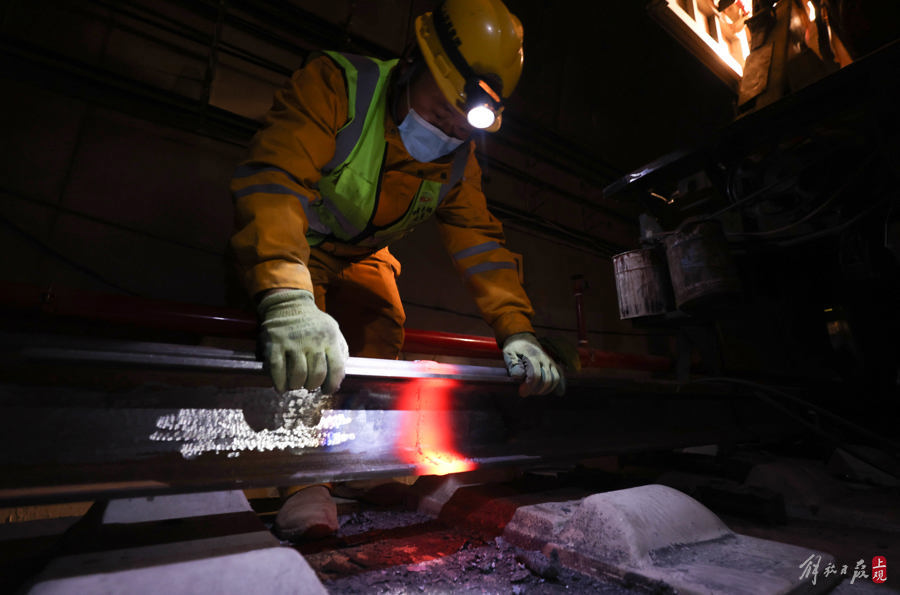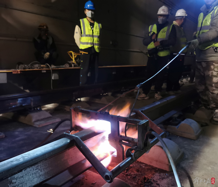 春节,他们在上海机场联络线隧道内焊接长钢轨
