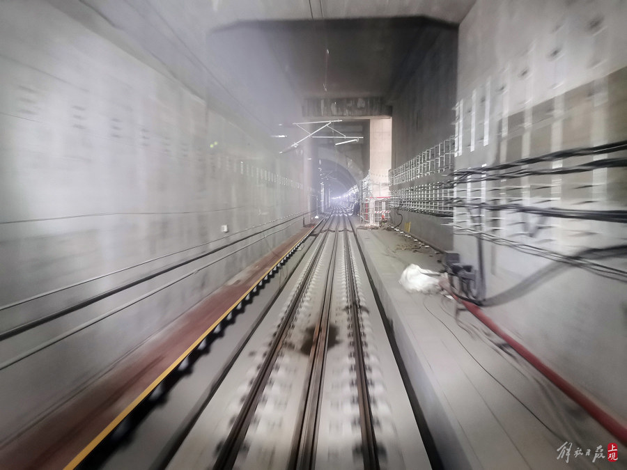 目前,长钢轨铺设工作已经从虹桥站穿越黄浦江,到达浦东三林南站。