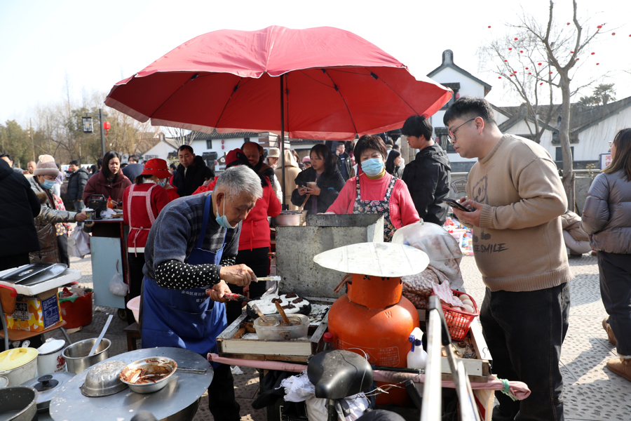 山塘老街年味浓郁,吸引沪浙两地居民、游客前来游玩。