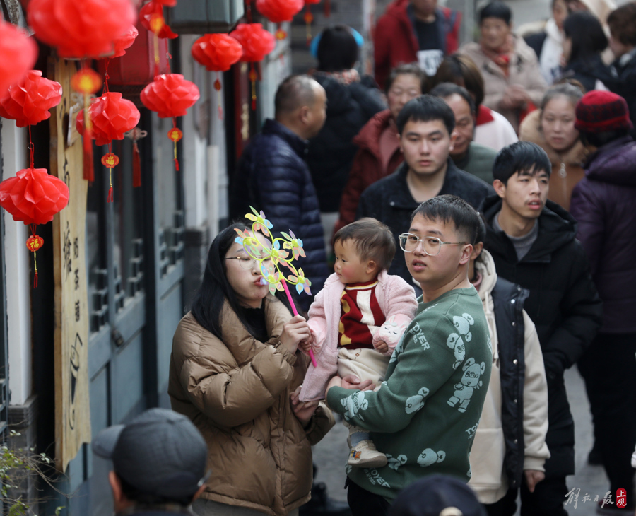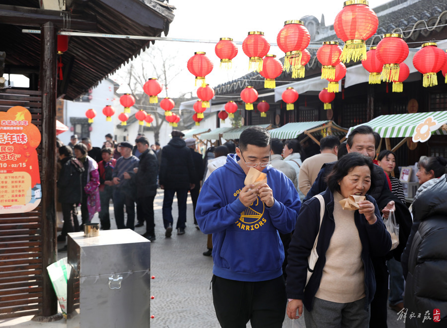 山塘老街年味十足,沪浙两地居民新春串门走亲戚