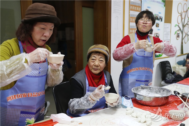 除了现场品尝汤圆与馄饨,上海银行“美好生活工作室”和田林街道还把这份节日温暖给社区孤老送到家,让更多老人感受社区大家庭的温馨和浓浓的节日气氛。退休居民明老师表示,没想到在家里也品尝到了这份手工美食。