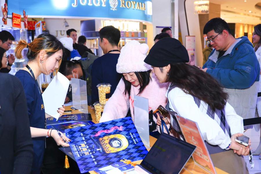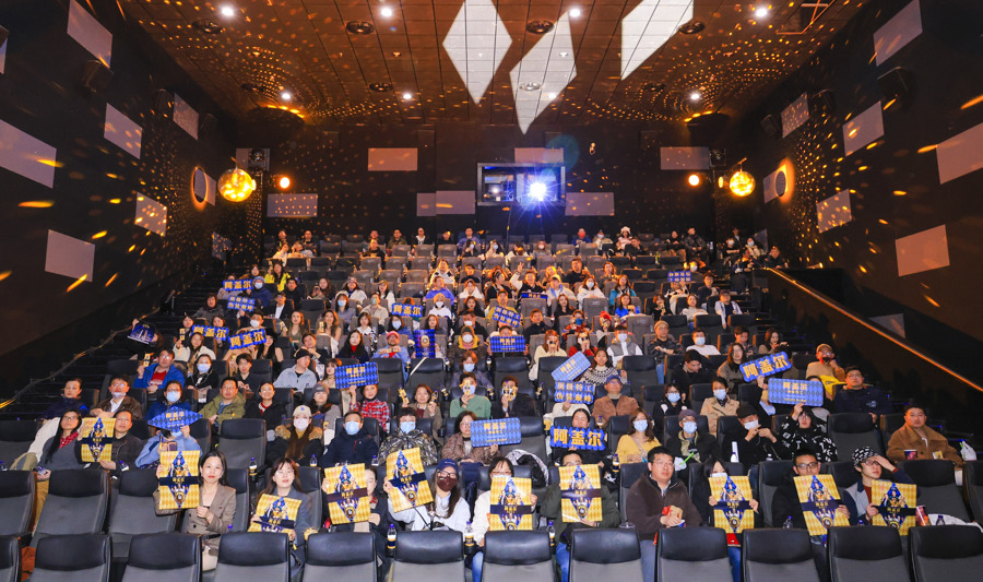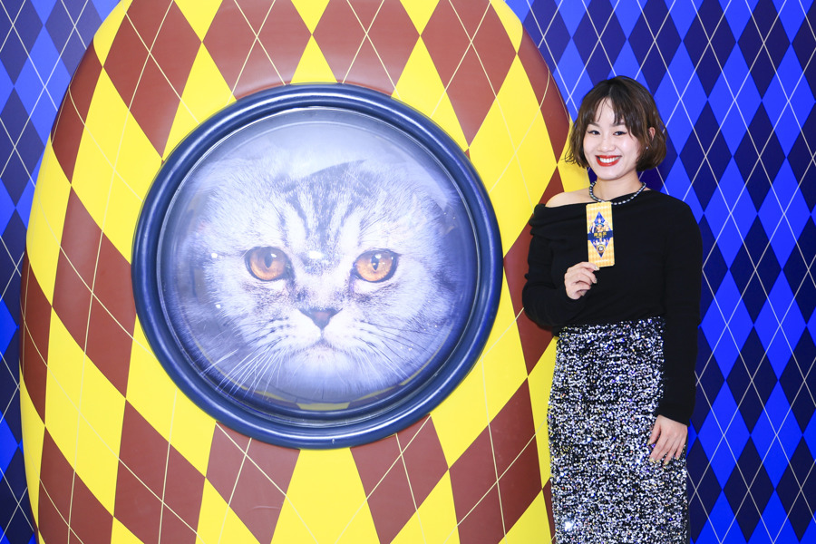 金色、菱形,这是电影《阿盖尔:神秘特工》中的标志性元素,也在2月21日举行的“特别开工派对”上海观影活动中营造了浓浓仪式感。影院现场随处可见菱形元素的装饰海报,不少人身着金色或者菱形花纹服饰观影,影片中的同款猫包也做成打卡装置,吸引众人驻足合影。