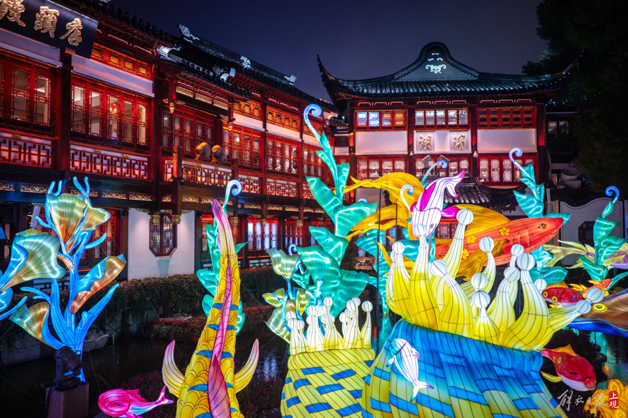 今年,以山海经为创意的豫园等会“山海奇豫记”火出圈。中心广场盘踞的大龙,古色古香的建筑上火红的游鱼,还有九曲桥一路各种“鲜花异草”,上古神兽,诠释了国风,也演绎了潮流。