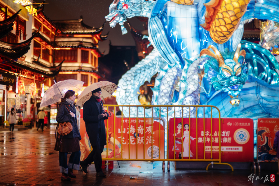 连日来阴雨天气,给园区客流量带来一定影响,不过对想看花灯的人来说,反而成为一大福利。