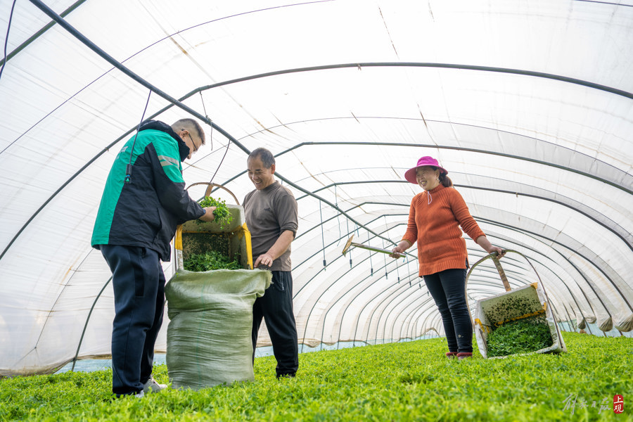 “春节到惊蛰期间是草头最嫩销量最好的时候,加上节后草头的价格相较春节期间下降约五成,亲民的价格也让销售量明显增长。”当天上午,叮咚采购员江利川到老田的大棚里挑春菜。这段时间,他每周来三四次,从老田这里拿一手源头菜。