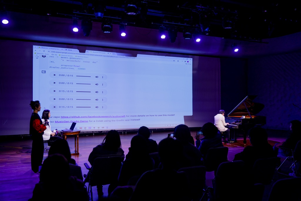 东方网记者包永婷2月29日报道:在 “数字缪斯——2024音乐科技融创节”发布会上,面对现场观众抛出“忧郁的雨天”的命题,不到1分钟的时间,AI和青年作曲家、钢琴演奏家朱序芝展示了各自的音乐演绎。“AI与艺术创作不止是竞争关系,也能相互合作。”朱序芝还根据AI作出的旋律延伸创作。 2月29日,由凯迪拉克•上海音乐厅举办的“数字缪斯——2024音乐科技融创节”正式启动。音乐节将在两个月的时间里,通过展演、论坛等板块,展示前沿的音乐科技研发作品,探索音乐科技演艺产业的新路径。 上海音乐厅去年12月发出“征集令”,面向全球音乐家及创意团队征集原创音乐融合类作品,共收到来自海内外投稿作品102部。经过五位“首席推荐官”的评选,4部作品进入“2024音乐科技融创节”“乐无穷”展演板块。