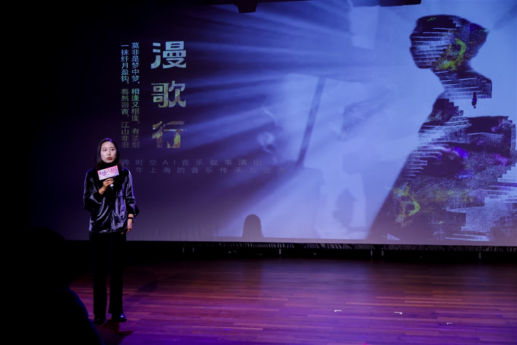 “漫歌行——跨时空AI音乐叙事”由限像工作室和同济大学设计创意学院相关实验室的主创团队创作,以极简主义电子音乐为载体,以评弹表演者为讲述人,以音乐故事的逻辑展开叙述,故事主体的“我”以机械臂的形态出现。“首席推荐官”黄若说:“这部作品看点很多,高科技与现代艺术的相结合,很值得推荐和鼓励。”
