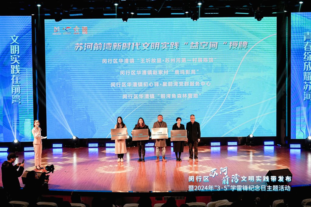 一批特色空间、1个志愿服务联盟、1张文明实践地图、2条线路、12个重点项目、12枚特色月章同步发布,全面展示闵行在“一江一河”文明实践带建设中的创新成果……在全国第61个学雷锋纪念日来临前夕,3月4日下午,“青春温暖 文明相伴”——闵行区苏河前湾文明实践带发布暨2024年“3•5”学雷锋纪念日主题活动在华漕镇举行。