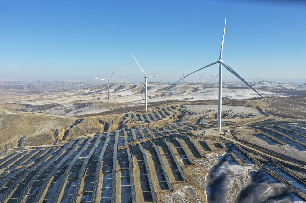 这是1月12日拍摄的河北承德丰宁风光氢储100万千瓦风光项目(无人机照片)。新华社发(王立群摄)