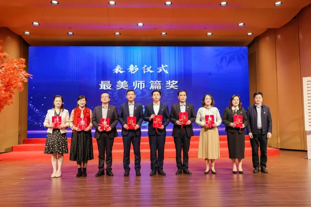 宝山区教育工作党委书记沈杰为“最美师篇奖”获得者颁奖。