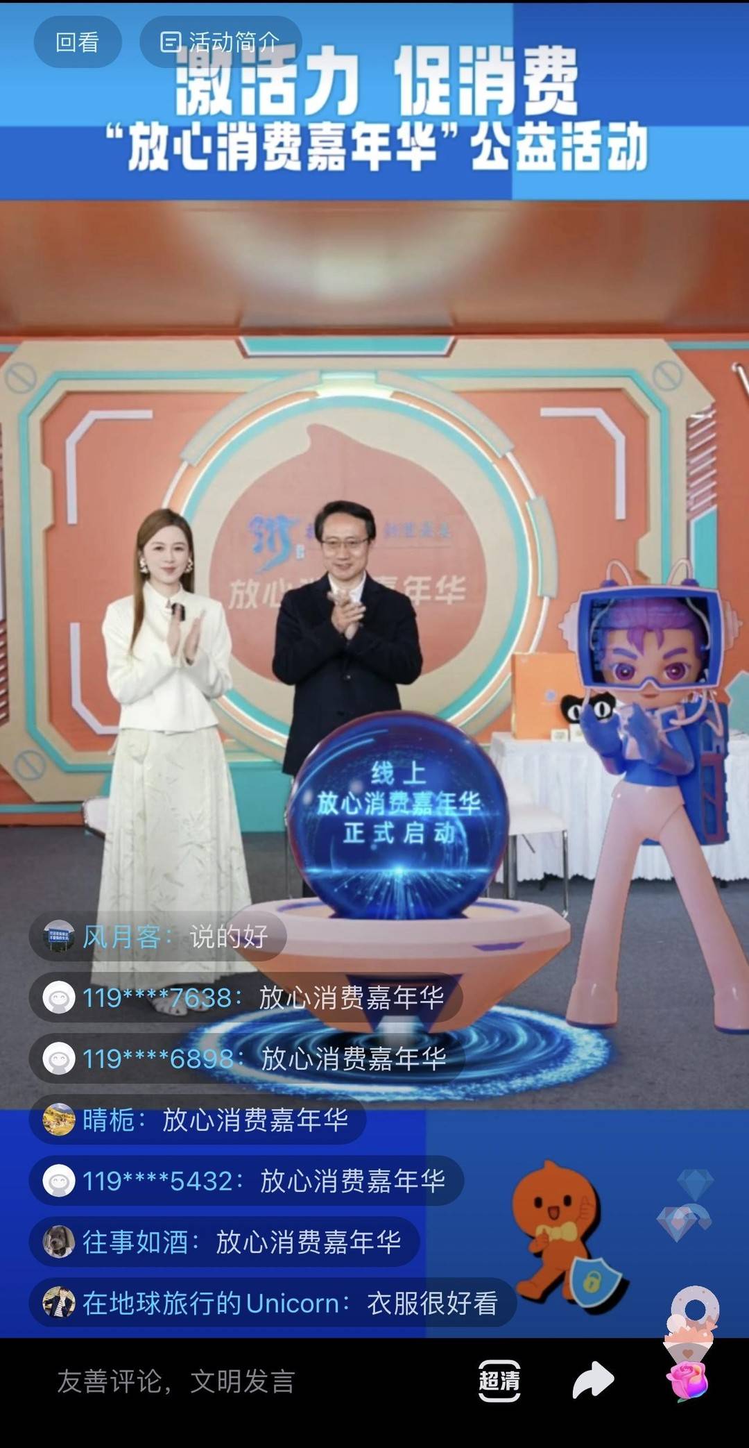 当天,浙江省消费者权益保护委员会副主任兼秘书长崔砺金走进淘宝“小安同学”直播间,与淘宝主播烈儿宝贝一起启动了“淘宝放心消费嘉年华”,截至目前,直播观看量超2000万。