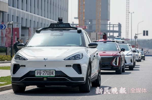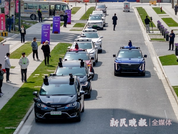 图说:今天上午,十多辆无人驾驶车辆在测试道路开展测试 新民晚报记者 陈梦泽 摄(下同)