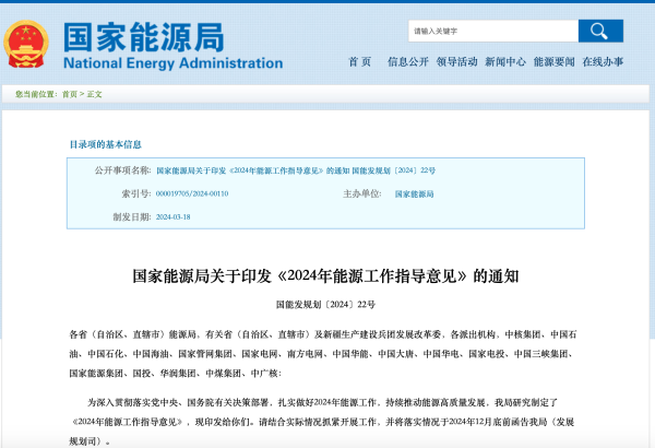 3月22日,国家能源局印发《2024年能源工作指导意见》。(以下简称《意见》)