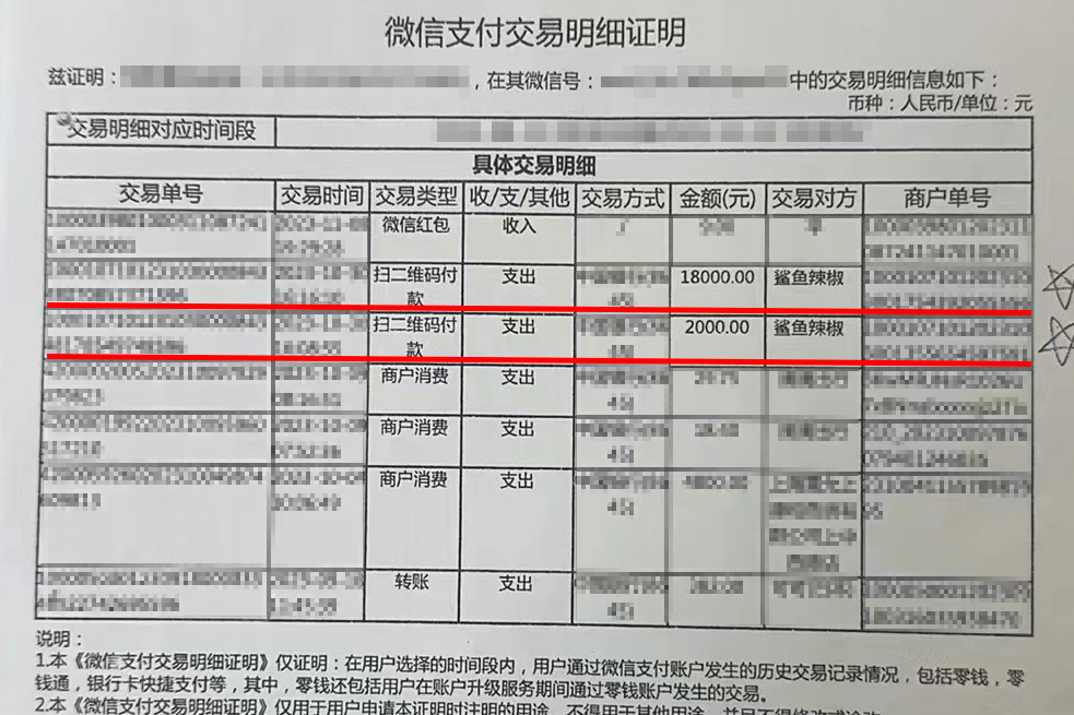 张某使用柴阿姨手机微信进行转账的两笔记录。本文图片均为 上海徐汇警方 提供