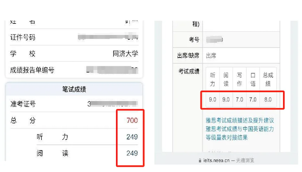 图说:叶隽扬的雅思成绩