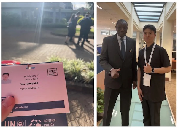 前不久,叶隽扬作为第六届联合国环境大会(UNEA-6)同济大学代表团的学生成员之一,在肯尼亚内罗毕参加大会。