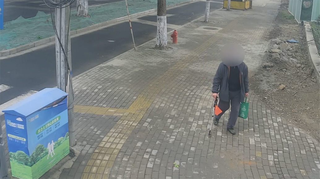 老人独自在街头游荡 本文图片均为 上海闵行警方 供图