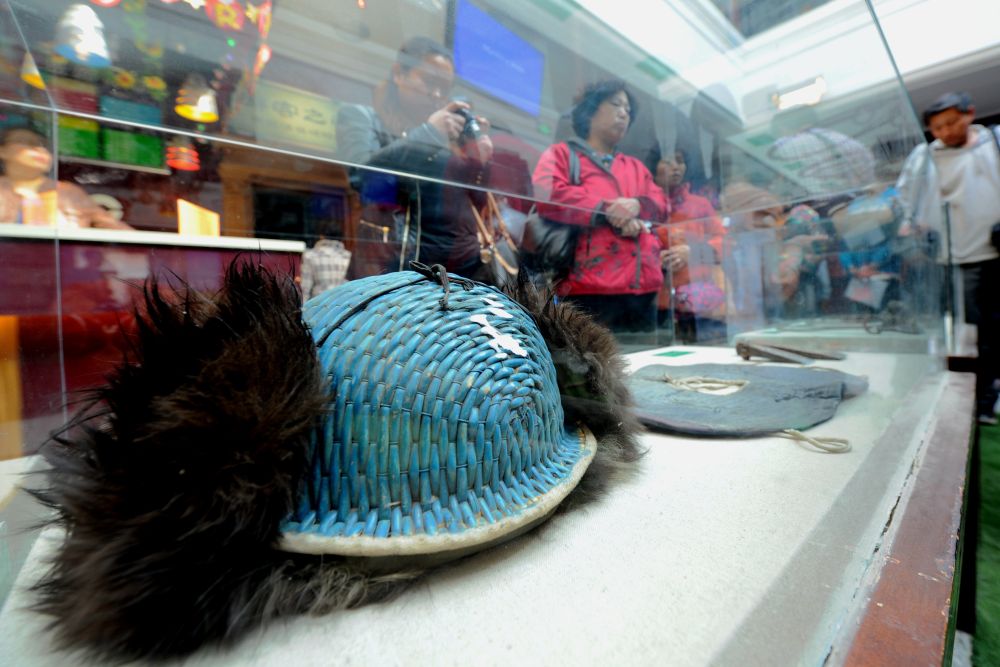 ↑这是黑龙江省博物馆收藏的伐木工人头盔(2014年4月1日摄)。当日,19件林业工人使用过的采伐工具,作为黑龙江重点国有林区停伐日的纪念物被黑龙江省博物馆永久收藏。