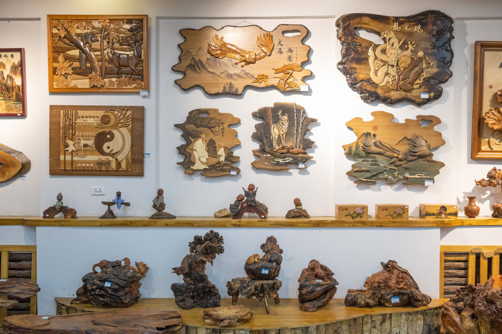 ↑这是2024年3月12日在伊春市美江木艺展览馆内拍摄的木拼画和北沉香工艺品。近年来,伊春市依托丰富的林业资源,大力发展木艺产业,在提高创意雕工水平、培养高质量人才队伍、扩大品牌影响力等方面持续发力。