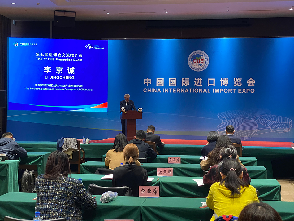 进博会展商代表、佛瑞亚亚洲区战略与发展副总裁李京诚在宣介会上交流发言。