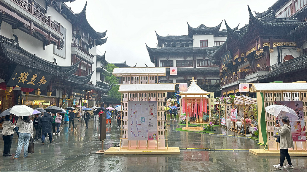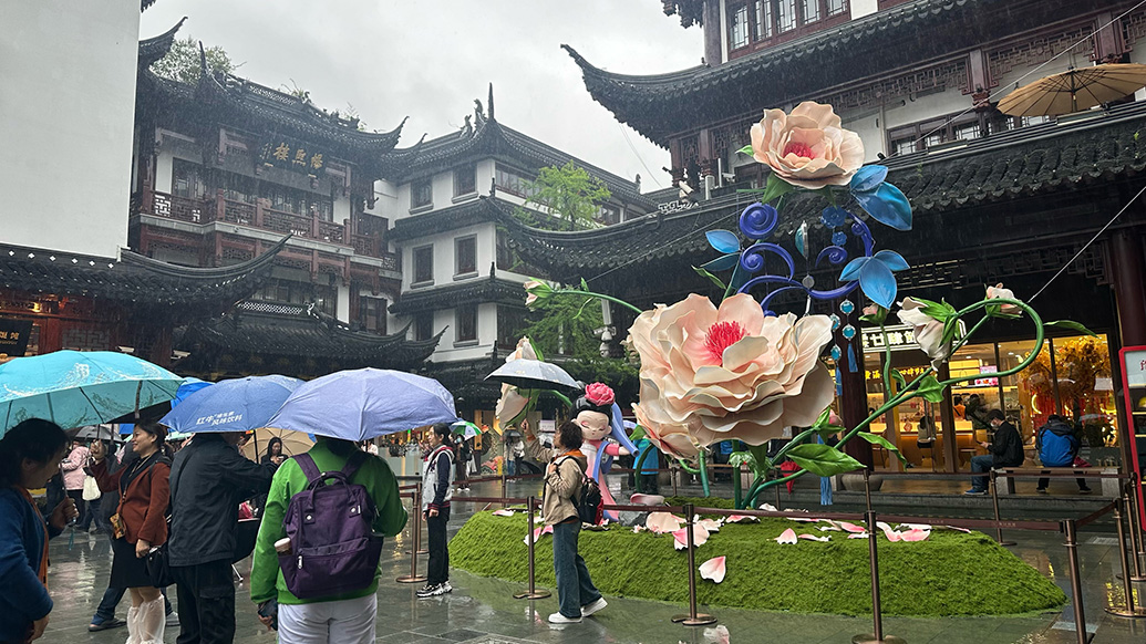 游客王小姐告诉记者,今天游览豫园的行程是她和朋友早已定好的,所以没有因为下雨而取消,但她并不觉得有所遗憾,“雨中的豫园感觉更有古典美,很有氛围感,这些花(装置)也很适合拍照,很有春天的感觉。”