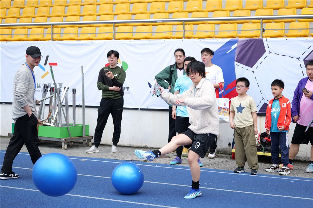 除了主赛场精彩的足球竞技,本次市民足球挑战赛的场地外围还设置了足球嘉年华活动,邀请参赛球员家庭成员和众多市民一起参与足球小游戏。足球保龄球、九宫格射门等趣味游戏目不暇接,无论是资深的足球爱好者还是绿茵“小白”,都轻松参与其中,收获乐趣。